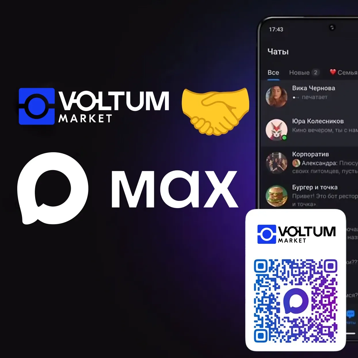 Мы рады сообщить, что компания Voltum.market расширяет каналы коммуникации с клиентами! Теперь связаться с нами можно не только через привычные WhatsApp и Telegram, но и в популярном российском мессенджере MAX.