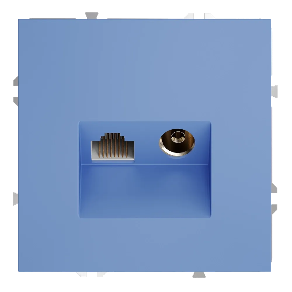 Деним — это не цвет. Это отношение. Розетка TV+RJ45 VOLTUM в исполнении «деним» — для тех, кто строит дом не по каталогу, а с характером. Где технологии работают безупречно, а дизайн говорит о вас без слов.