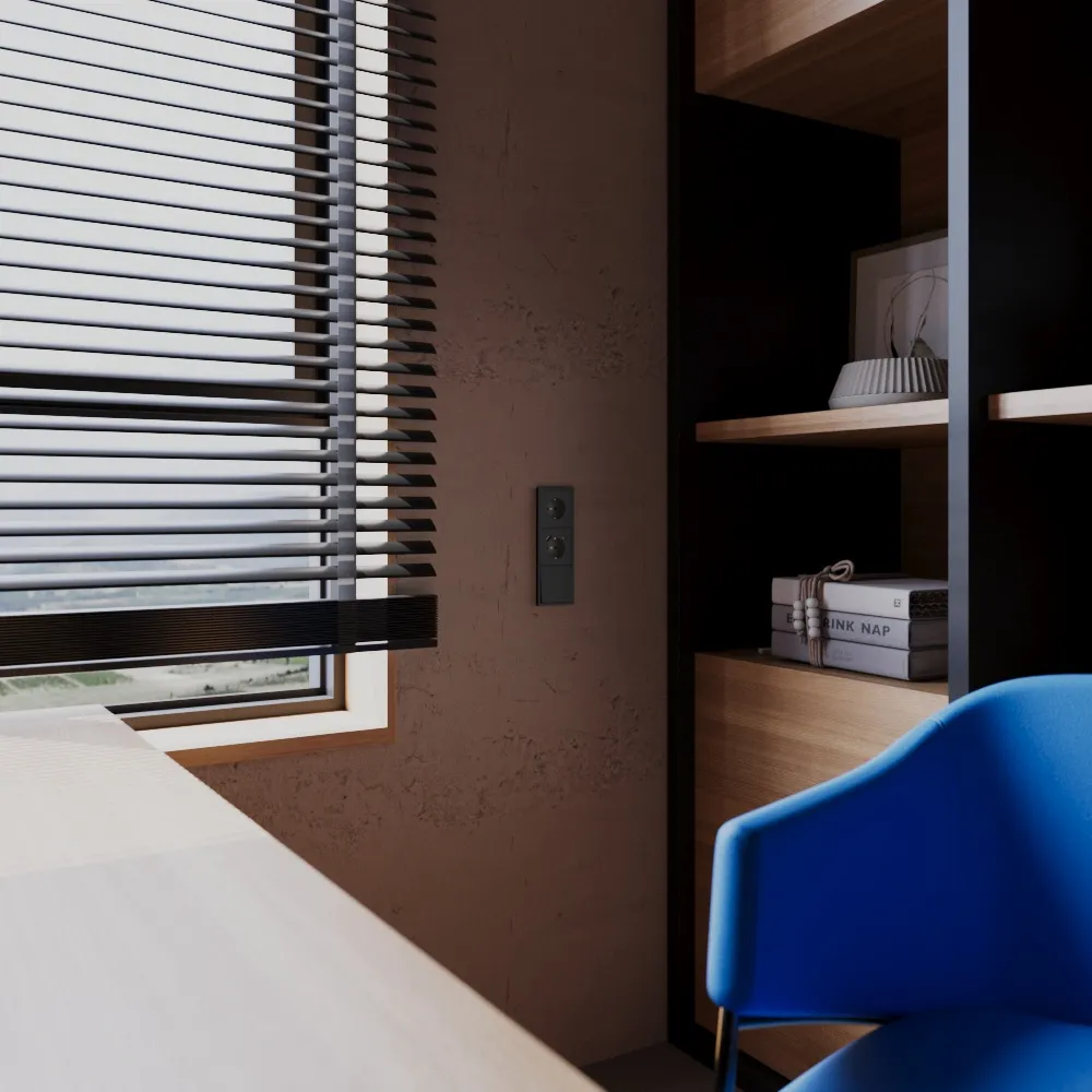 В отличие от плоского чёрного, антрацит не подавляет пространство — он добавляет ему характер. Идеально дополняет лофт, минимализм, индустриальный стиль и скандинавский дизайн с акцентами. Выключатель становится графичным элементом, который подчёркивает продуманность интерьера.