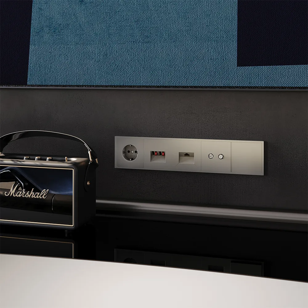 Розетка легко комбинируется с другими устройствами и рамками серии S70 — например, можно разместить рядом телевизионную розетку TV+SAT, электрическую розетку и USB-порт в одной рамке, создав единый медиаблок управления.