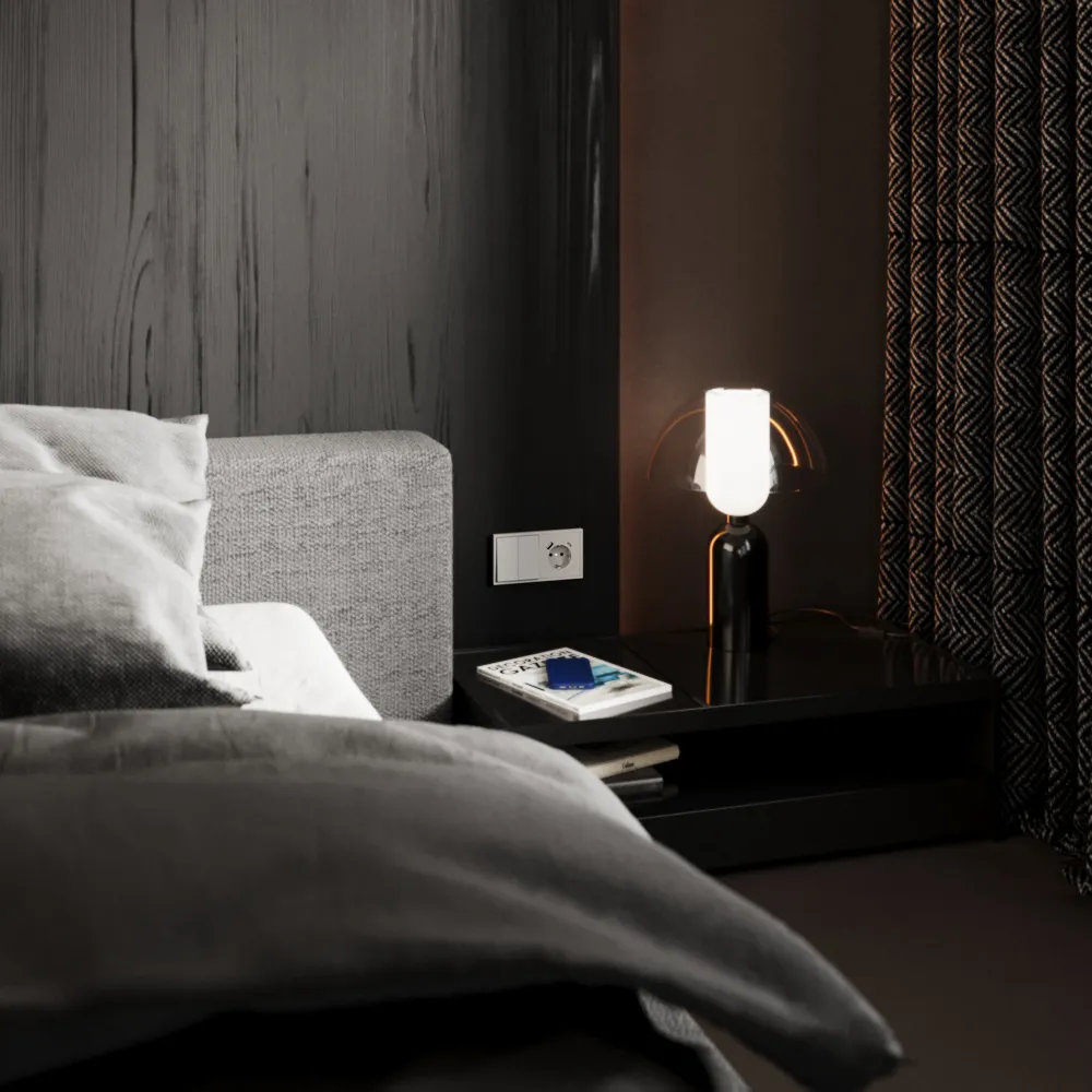 В отличие от обычного выключателя, перекрёстный переключатель используется в связке с двумя проходными переключателями, позволяя включать и выключать свет из любого количества мест. Двухклавишная версия даёт возможность управлять двумя световыми зонами одновременно — например, основным освещением и декоративной подсветкой — сохраняя при этом полную свободу перемещения по помещению.
