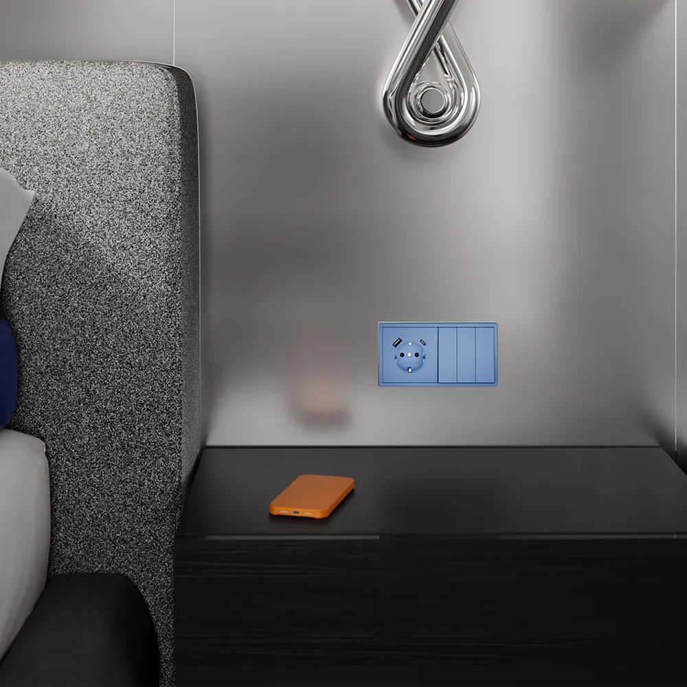 Трехклавишный выключатель VOLTUM S70 в цвете «деним» — это элегантное и функциональное решение для управления тремя независимыми световыми зонами из одной точки. Идеально подходит для гостиных, спален, кухонь и прихожих, где требуется раздельное включение основного, декоративного и акцентного освещения.
