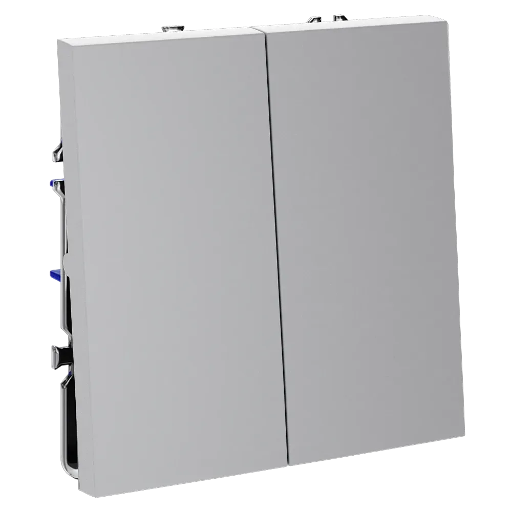 Двухклавишный выключатель самовозвратный VOLTUM S70 в цвете «серый» — это современное и функциональное решение для одновременного управления двумя независимыми автоматизированными системами, такими как жалюзи и рольставни, ворота и шторы, вентиляция и сигнализация. Благодаря механизму самовозврата, каждая клавиша автоматически возвращается в исходное положение после нажатия, обеспечивая импульсное (кратковременное) управление без фиксации — идеально для систем, требующих точного и безопасного сигнала.